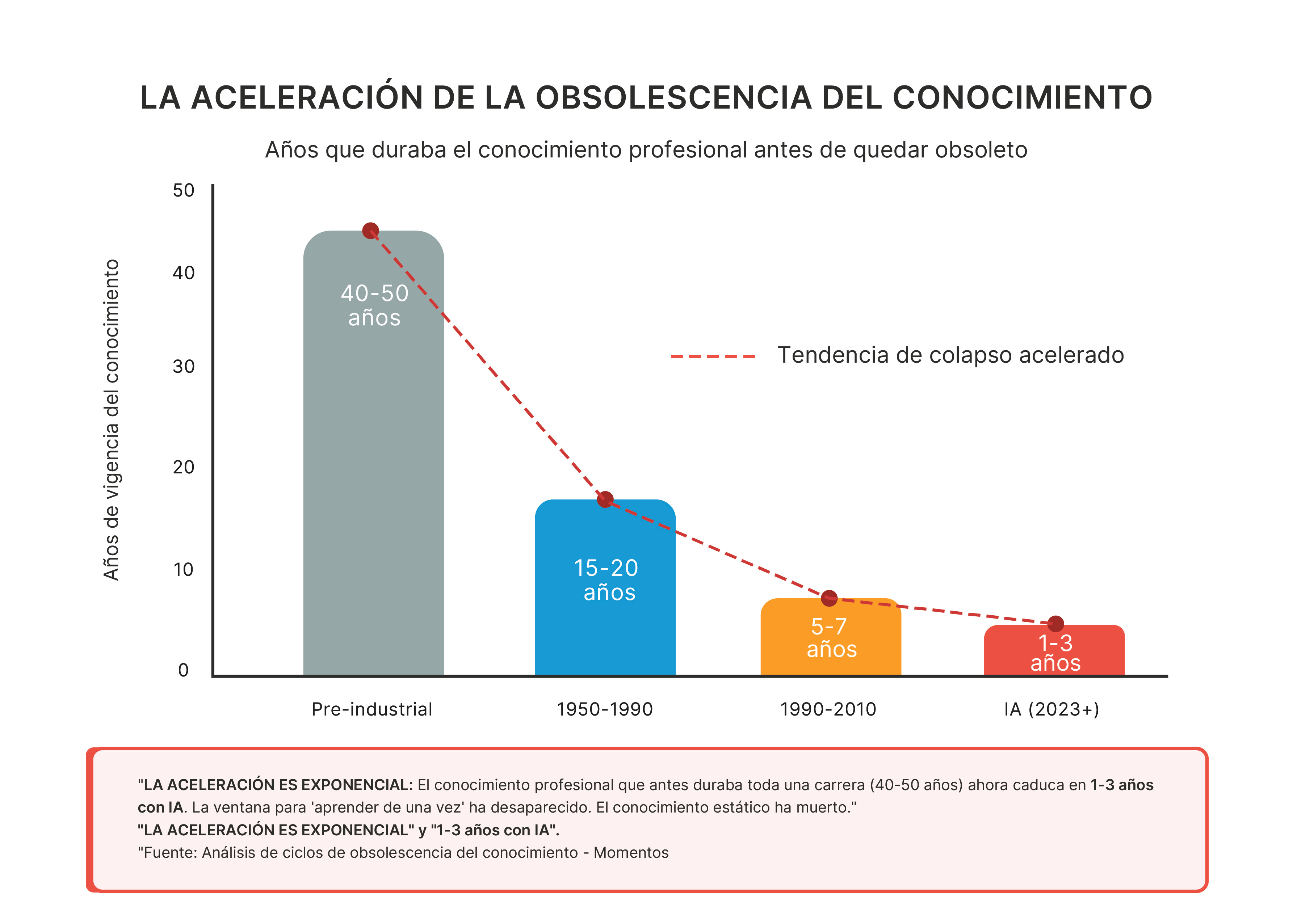 La promesa implícita de la educación tradicional era clara: invierte tiempo y dinero en acumular conocimiento, y este conocimiento te durará toda tu carrera.